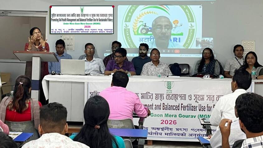 Hooghly, April 2026 : In a decisive stride towards sustainable and resilient agriculture, ICAR-Central Inland Fisheries Research Institute (CIFRI), Barrackpore, in collaboration with Krishi Vigyan Kendra (BCKV) Hooghly, organized a high-impact Farmer Awareness Campaign on the balanced use of fertilisers under the theme “Alternatives to Chemical Fertilizers: The Path to Sustainable and Prosperous Agriculture” in Hooghly district today. The initiative echoed the Government of India’s strong push for balanced fertilization as a cornerstone of sustainable agricultural transformation—focusing on restoring soil health, enhancing nutrient use efficiency, and safeguarding environmental integrity.