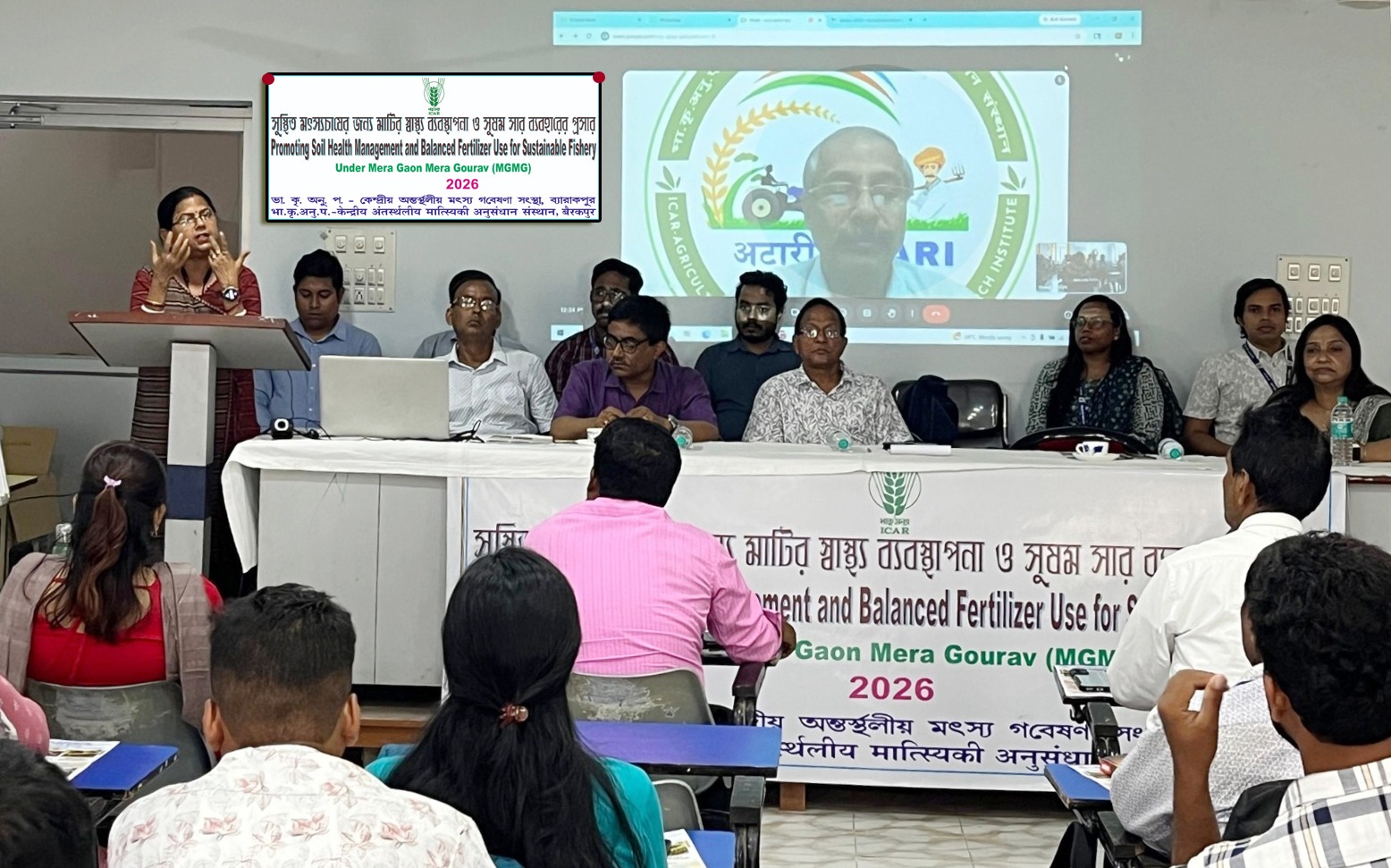 The programme was virtually inaugurated by Dr. Pradip Dey, Director, ICAR-ATARI Kolkata and Director (Additional Charge), ICAR-CIFRI, who urged farmers to adopt soil test–based fertiliser application using Soil Health Cards, integrate micronutrients, and promote green manuring to enhance soil organic matter and farm profitability. Emphasizing Integrated Nutrient Management (INM), he advocated balanced use of fertilizers—including NPK complexes and SSP—while cautioning against indiscriminate use of urea and DAP to ensure long-term soil health and sustainability.