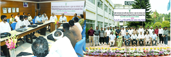 Inaugurating the campaign, Dr. Pradip Dey, Director, ICAR-CIFRI, underscored that imbalanced fertiliser use in catchment areas accelerates soil degradation and intensifies nutrient runoff, posing serious threats to aquatic habitats and fish health. Emphasizing the urgency of corrective measures, he advocated for soil- and water test–based fertiliser application in aquaculture. He urged farmers to move away from indiscriminate chemical use and adopt integrated nutrient management practices, combining biofertilisers, organic inputs, and precision approaches. He further highlighted that balanced fertilisation is crucial not only for enhancing fish productivity but also for safeguarding aquatic ecosystems and maintaining water quality.