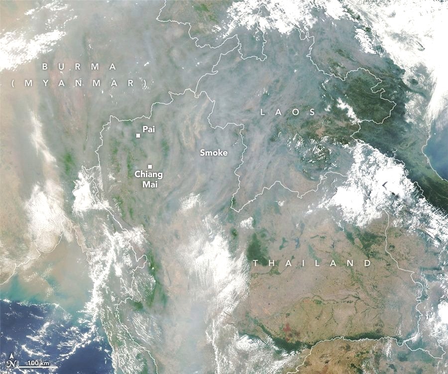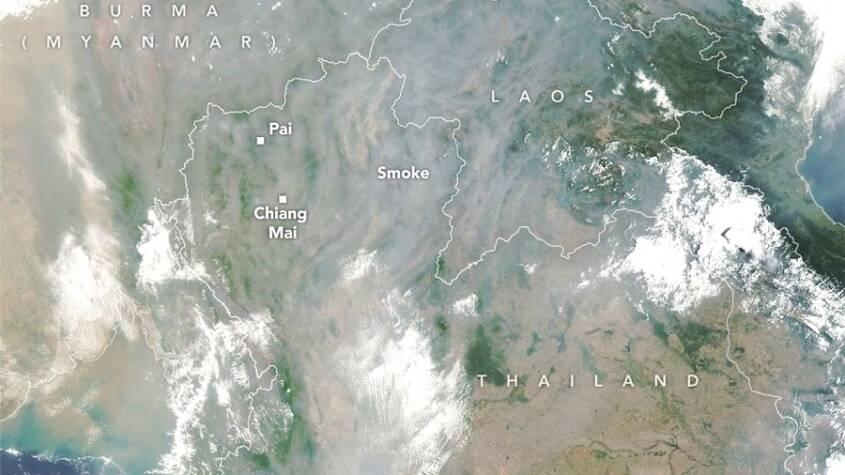 NASA Flags Volumous Smokes Shrouding Northern Thailand.
