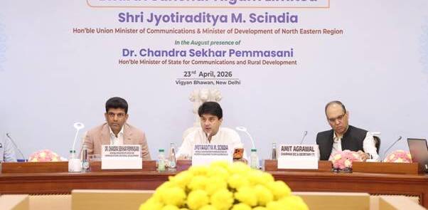 The annual results of Bharat Sanchar Nigam Limited (BSNL) for FY 2025-26 were reviewed at the Strategic Review and Planning Meet (SRPM) held at Vigyan Bhawan, New Delhi, today. The meeting was chaired by Union Minister of Communications Shri Jyotiraditya M. Scindia and attended by Hon’ble Minister of State for Communications Dr. Chandra Sekhar Pemmasani, Secretary (Telecommunications) Shri Amit Agarwal, senior officials from the Department of Telecommunications (DoT), CMD BSNL Shri A. Robert J. Ravi, and members of the BSNL Board and Chief General Managers (CGMs) from across the country.