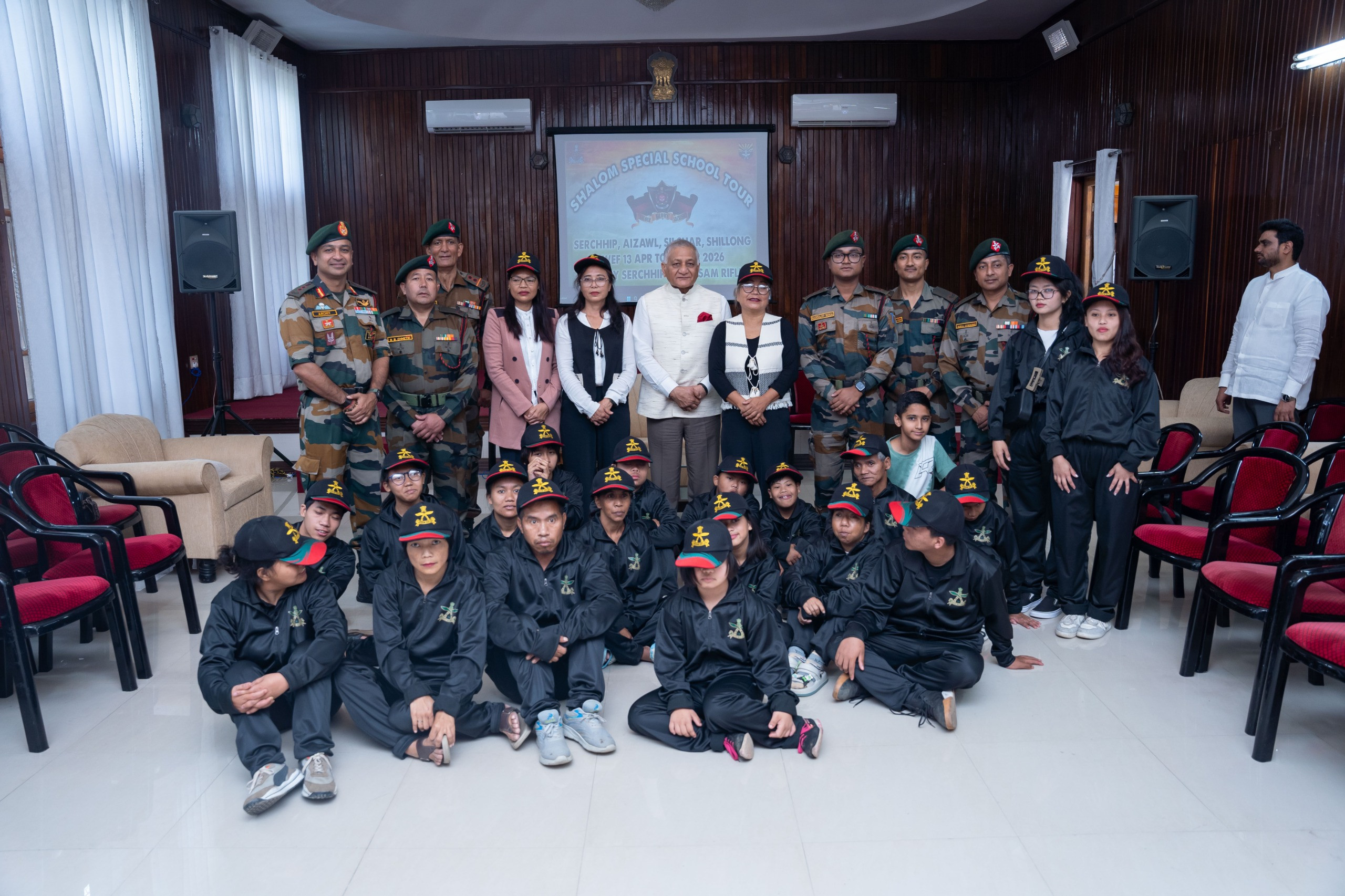 Aizawl, April, 2026 : Mizoram Governor, General (Dr) Vijay Kumar Singh, PVSM, AVSM, YSM (Retd) today interacted with students of Shalom Special School, Serchhip, at the Durbar Hall of Lok Bhavan in Aizawl. The group is currently undertaking a 10-day study tour from April 13 to 23, organised by the Serchhip Battalion of the Assam Rifles. The itinerary includes visits to Aizawl, Silchar, Shillong and Cherrapunji, aimed at broadening the students’ learning experiences beyond the classroom.