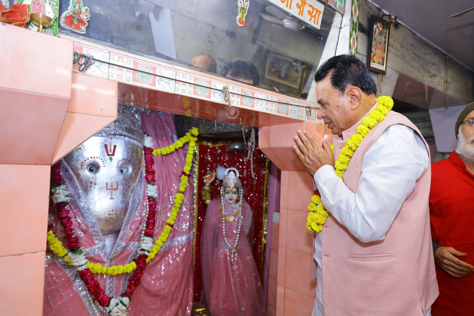 Jaipur : Minister of Parliamentary Affairs, Law, and Legal Affairs, Shri Jogaram Patel, visited the Ratanada Ganesh Temple on Sunday to offer prayers. He performed a formal puja of Lord Shri Ganesh and wished for the happiness, prosperity, and well-being of the people of the state. Additionally, he prayed for the successful organization of the ‘Rising Rajasthan Global Investment Summit,’ dedicated to the state’s economic development.
