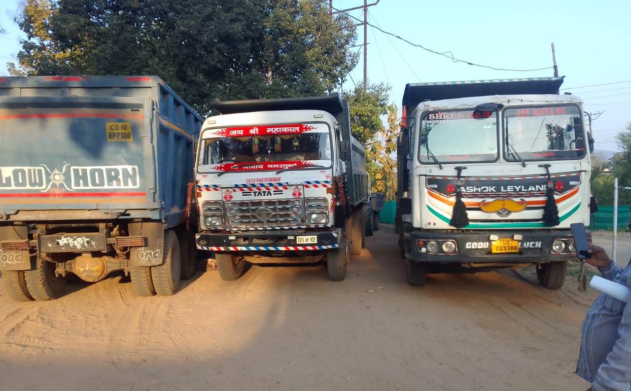 Bilaspur: 11 trucks and 8 tractors seized while illegally mining and transporting minerals