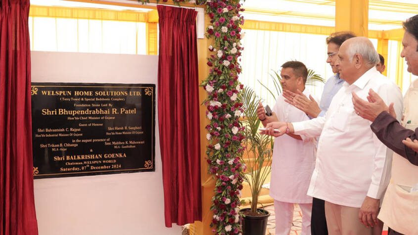 During the event, Welspun Group Chairman Shri B.K. Goenka welcomed the Chief Minister and shared that the “Integrated Bed Linen and Terry Towel” project, launched today, will place the Indian textile industry on the global stage. He mentioned that this new venture is set to become the world’s largest towel-manufacturing facility within the next 18 months. Shri Goenka credited the comprehensive development of Kutch, including the Welspun Group’s growth, to Prime Minister Shri Narendra Modi and the Government of Gujarat. He commended the approach of creating new employment opportunities for women through the textile policy and highlighted the Welspun Group’s success story from Anjar to the USA, appreciating the support provided by the Gujarat Government.
