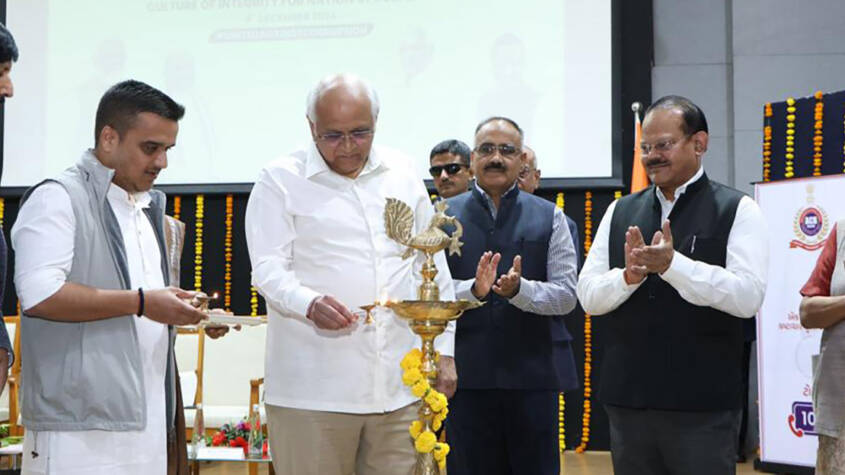 The event was attended by Chief Secretary Shri Raj Kumar, Additional Chief Secretary to the Chief Minister and Home Department Shri M.K. Das, Vigilance Commissioner Shri Sangeeta Singh, NFSU Vice-Chancellor Dr. J.M. Vyas, and ACB officers, employees, and students associated with the Gujarat State Anti-Corruption Bureau.