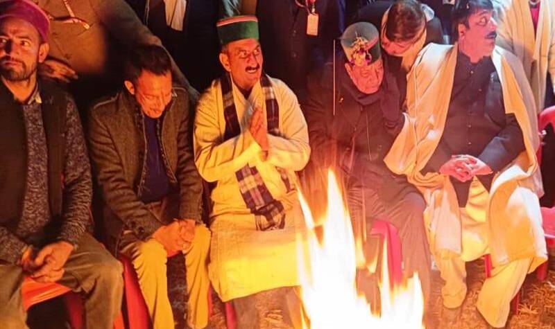 Sh. Sukhu then visited the home of Hari Singh a resident of Tikkar where he was greeted with a warm welcome as per the local customs. After warming himself by the bonfire the Chief Minister enquired about the availability of health services and the state of education in the area.