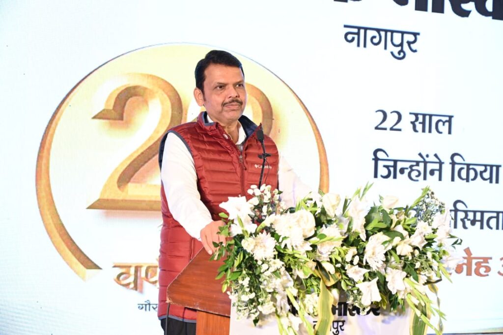 The Chief Minister was speaking as the chief guest at the 22nd anniversary celebration of the Nagpur edition of Daily Bhaskar, held at the Center Point Hotel in Nagpur. Present at the event were Deputy Chief Minister Eknath Shinde, Deputy Chairperson of the Legislative Council Dr. Neelam Gorhe, Ministers Shivendra Raje Bhosale and Nitesh Rane, MLAs Krupal Tumane, Vijay Wadettiwar, Zeeshan Siddiqui, Vikas Thakre, Vishwajit Kadam, along with Daily Bhaskar’s Chief Editor Manmohan Agarwal, Group Editor Prakash Dubey, Director Rakesh Agarwal, and Editor Manikant Soni, among others.