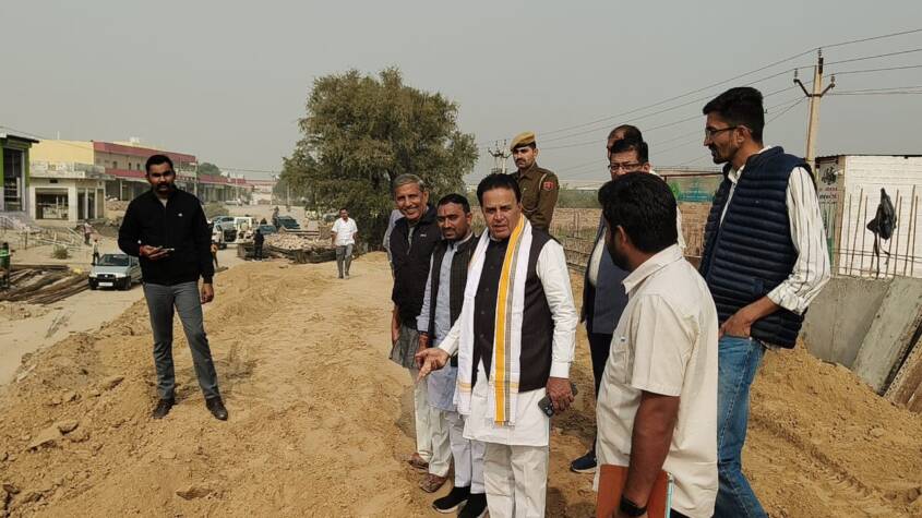 Parliamentary Affairs Minister Reviews Bridge Construction on AIIMS-Salawas Road