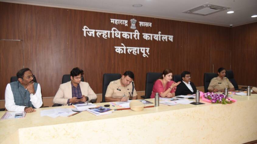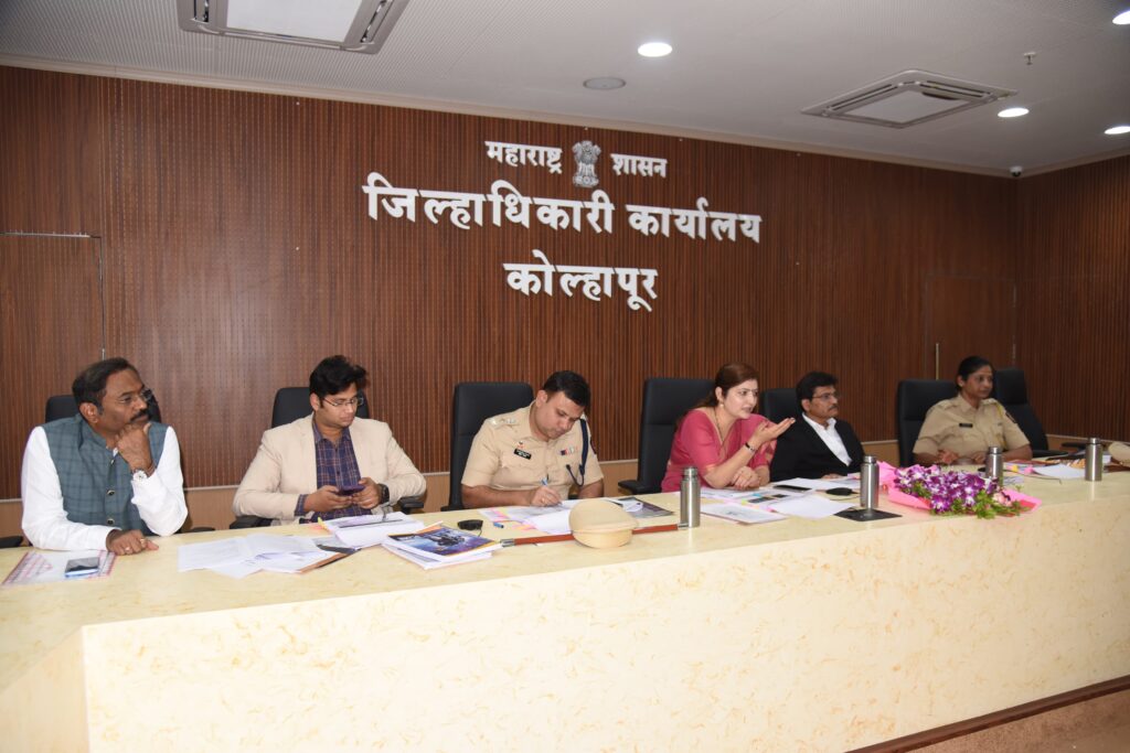 A review meeting was held under Mrs. Chakankar’s chairmanship in the new conference hall at the District Collector’s Office. Attendees included Acting District Collector Sanjay Shinde, Zilla Parishad CEO Karthikeyan S., Superintendent of Police Mahendra Pandit, Ichalkaranji Municipal Commissioner Omprakash Divte, Kolhapur Municipal Corporation Additional Commissioner Rahul Rokde, Additional SP Jayashree Desai, District Women and Child Development Officer Suhas Waingade, Zilla Parishad’s Women and Child Development Program Officer Shilpa Patil, Commission District Coordinator Anand Shinde, and other departmental officials.