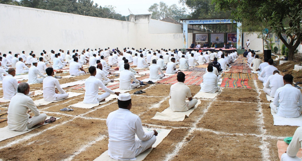 A special meditation and yoga camp was organized for prisoners in the Central Jail of the capital Raipur today on the occasion of the first International Meditation Day. This meditation and yoga camp was conducted by former member and senior instructor of Art of Living, Mr. Ajay Singh. In this camp, prisoners were made to practice various methods of meditation, pranayama and yoga.