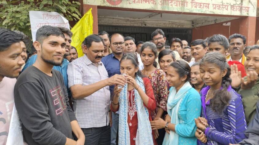On this occasion Mr. Uike along with Integrated Tribal Development Project Office, Pandharakwad Project Officer Suhas Gade and other officers and staff were present. Mr. Uike interacted with the students for a long time at the protest site, got to know their problems and discussed how they can be resolved. As there was a positive discussion to resolve the demands of the students at the government level, the students withdrew their protest in their presence.