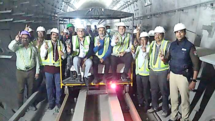 Shri P. Uday Kumar Reddy, General Manager, Metro Railway and Chairman, KMRCL along with Shri Anuj Mittal, Principal Chief Engineer, Metro Railway and Managing Director, KMRCL, other senior officials of Metro Railway and KMRCL conducted a trolley inspection one day ahead of tight schedule set by KMRCL for completion of track works in West-bound Tunnel between Esplanade – Sealdah Section of the construction of the Green Line.