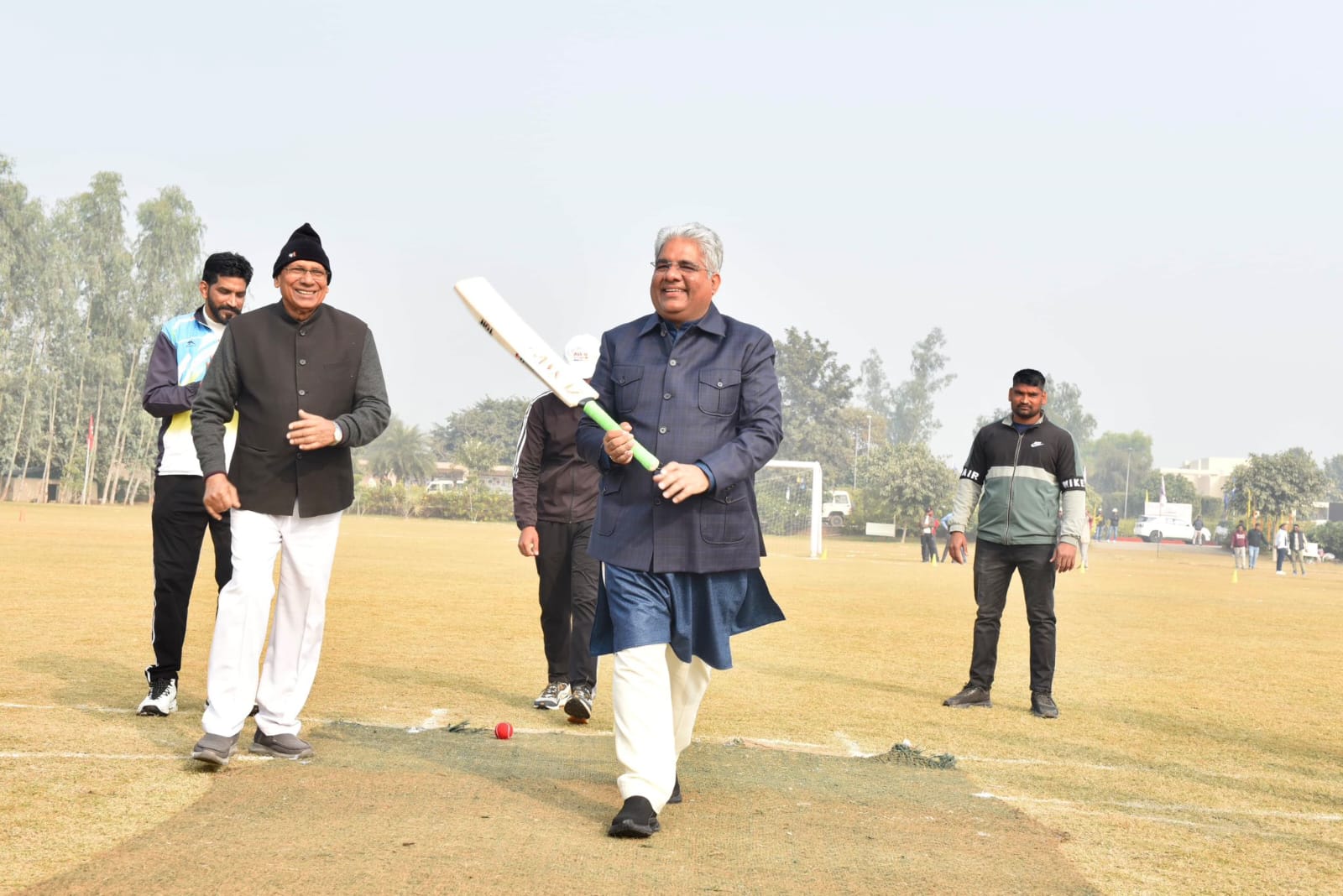 Union Minister Shri Bhupender Yadav interacted with players from the cricket teams participating in the competition and encouraged them. He initiated the event by tossing the coin for the first match between the two opening teams of the Behror block.