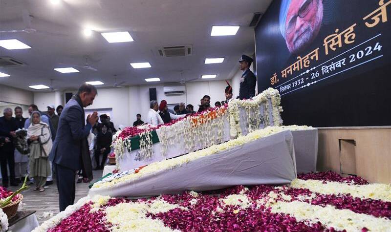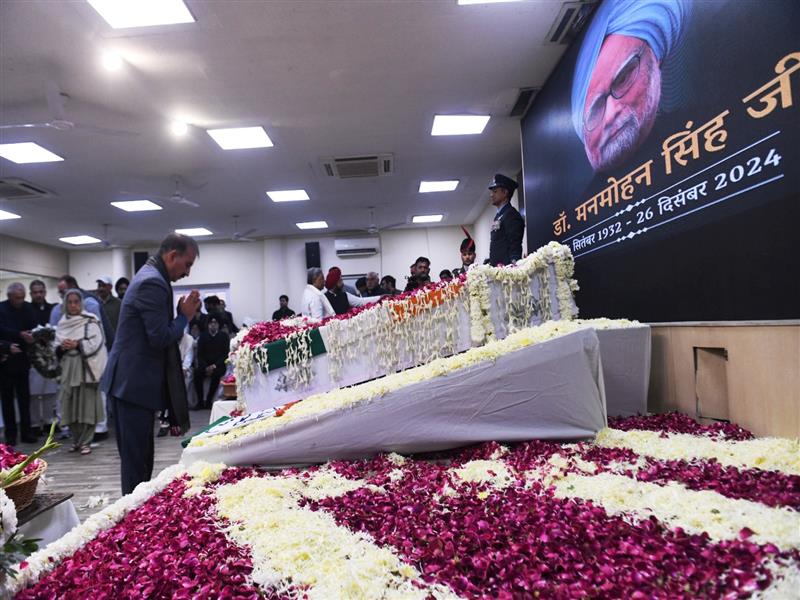 Chief Minister Thakur Sukhvinder Singh Sukhu attended the funeral of former Prime Minister late Dr. Manmohan Singh at Nigambodh Ghat, New Delhi today. Late former Prime Minister was cremated with full state honours.