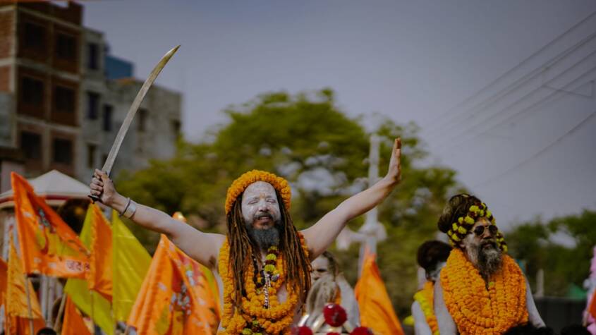 A unique feature observed in the procession of Atal Akhara was the spears adorned with flowers at the forefront of the entrance procession, receiving reverence equal to that of the Akhara’s deity.