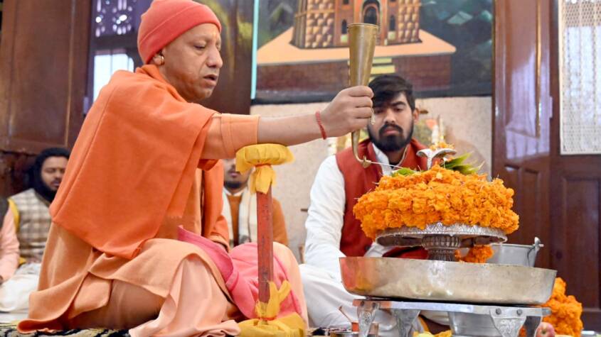 CM Yogi performs Rudhrabhishek, prays for the welfare of the nation