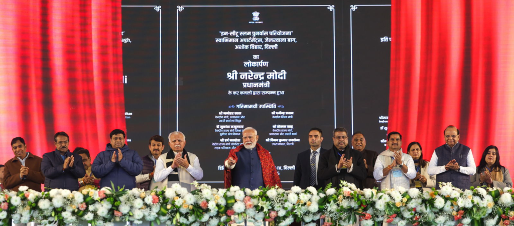 The Prime Minister inaugurated the 1,675 newly constructed flats for the dwellers of JJ clusters and also handed over keys to eligible beneficiaries at Swabhiman Apartments in Ashok Vihar, Delhi. The inauguration of newly constructed flats will mark the completion of the second successful In-Situ Slum Rehabilitation Project by the Delhi Development Authority (DDA). The objective of the project is to provide the residents of the JJ clusters in Delhi with a better and healthier living environment equipped with proper amenities and facilities.