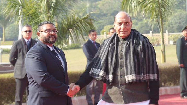 Raksha Mantri reaffirmed India’s readiness to support the Maldives in capability enhancement for defence preparedness, including provisioning of defence platforms & assets to augment its capacities, as per its national priorities and in line with New Delhi’s ‘Neighborhood First’ policy and the vision of SAGAR (Security And Growth for All in the Region). Minister Maumoon appreciated India’s historical role as the ‘First Responder’ for the Maldives, and thanked New Delhi for assisting Male in augmenting the modern infrastructural capacities and training of defence & security personnel. On the Government of Maldives’ request, India handed over defence equipment and stores to the Maldives.