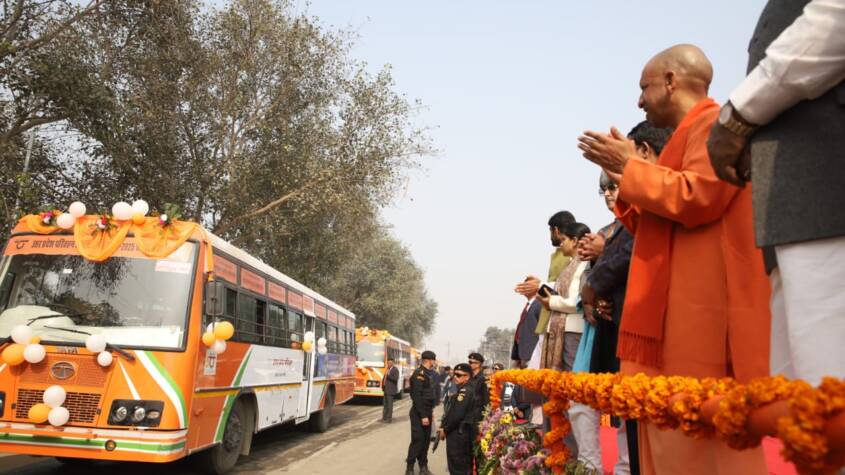 CM Yogi flags off 100 new buses to enhance transport facilities for devotees during Mahakumbh