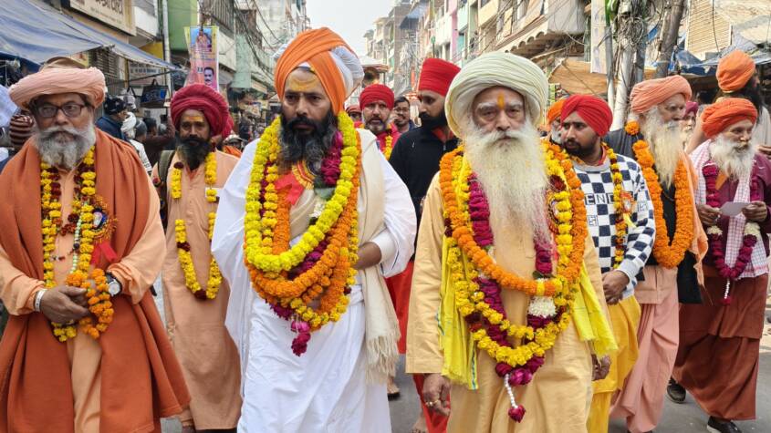 The entry procession began from Munshi Ram Baghia in Muthiganj and made its way through various routes in the city before reaching the Mahakumbh area. Along the way, local residents welcomed the saints with floral showers at several locations.