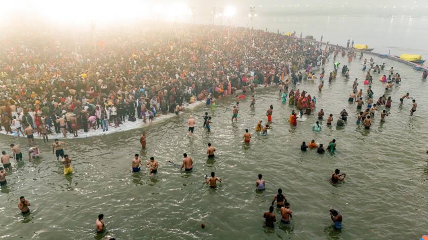 On the first bathing festival of Mahakumbh, the grand celebration of social unity, a massive number of devotees from across the country and the world gathered at the sacred Sangam to take a holy dip. The spiritual and cultural magnificence of the divine and well-organized Mahkumbh left the pilgrims overwhelmed with awe and devotion.