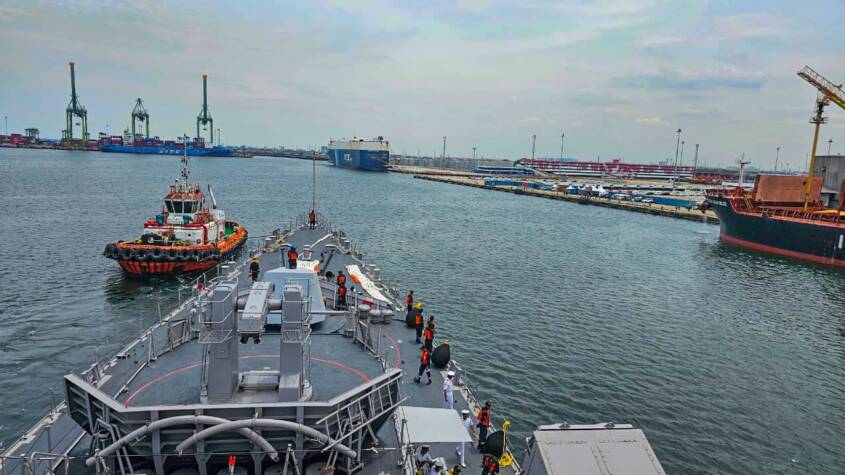 Mission deployed in the South Eastern Ocean Region, the indigenous destroyer arrived at Jakarta, Indonesia on an operational visit.