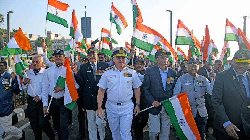 On the occasion of the 9th Armed Forces Veterans Day, Eastern Naval Command organised the maiden Veterans’ Day Parade at RK Beach, Visakhapatnam, on 18 Jan 25. The historic event witnessed enthusiastic participation by over 500 veterans and Veernaris, along with their dependents, and was a heartfelt tribute to the brave men and women who have served the nation.
