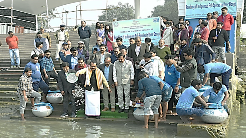 Mr. George Kurian participated in the Ganga River Ranching program by successfully releasing 0.58 lakh advanced fingerlings of Indian Major Carp (viz. Gibelion catla, Labeo rohita, Cirrhinus mrigala) including Bata (Labeo bata) into the Holy Hooghly River. The coveted river ranching program at Gandhi Ghat, Barrackpore, signifies the Government’s dedication in preserving the ecological balance of our sacred rivers, along-with releasing fish fingerlings marks a significant step towards reviving the Hooghly Rivers aquatic biodiversity and promoting sustainable fisheries practices.