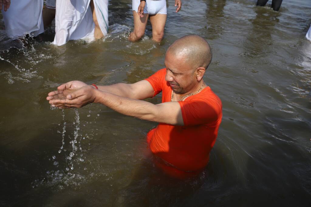 CM Yogi and his Cabinet take the holy dip at Sangam praying for public welfare