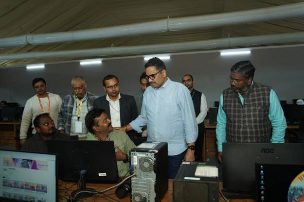Shri Sanjay Jaju visited the Media Center located in Maha Kumbh Mela area and reviewed the facilities being provided to the journalists here. He also interacted with the journalists sitting at the work stations in the media center.