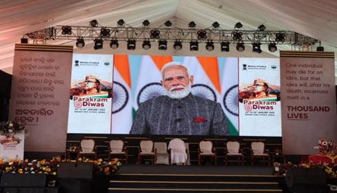 The grand celebration of Parakram Diwas 2025 began on 23rd January 2025 at Barabati Fort in Cuttack, Odisha marking the 128th birth anniversary of Netaji Subhas Chandra Bose. The event, which was organised at his birthplace, also commemorated Odisha’s connection with Netaji, and the state’s impact in developing Netaji’s early sensibilities. The highlight of the event was a video message from the Prime Minister, Shri Narendra Modi who paid tribute to Netaji highlighting his unwavering dedication to the nationalist cause. The Prime Minister recalled the inspiring journey of Netaji’s life and also stressed upon Netaji’s early connection with Odisha. Remembering Netaji, he recalled Netaji’s perseverance and determination towards the dream of ‘Azaad Hind’. He extolled the Azad Hind Fauz as a timeless example of unity in diversity and called upon the nation to be united in the cause of a ‘Viksit Bharat’. Reiterating his commitment to India becoming a global powerhouse, the Prime Minister exhorted the nation to work together for realising the dream of a ‘Viksit Bharat’ as a true ‘Kaaryanjali’ to Netaji.