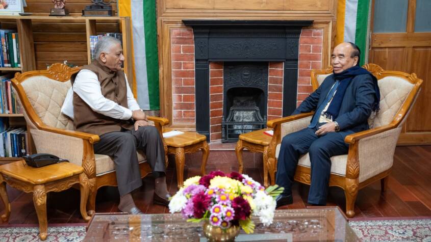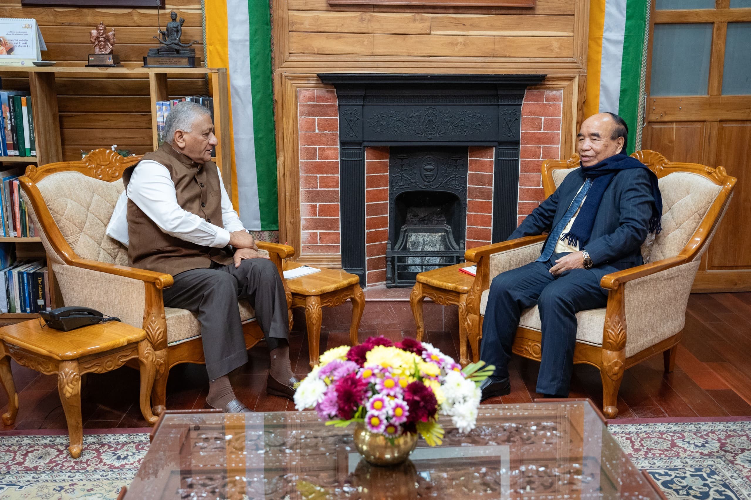 Aizawl : Former Chief Minister of Mizoram Pu Zoramthange met the Governor of Mizoram Gen (Dr) VK Singh, PVSM, AVSM, YSM (Retd) at the Raj Bhavan on a courtesy visit, today.