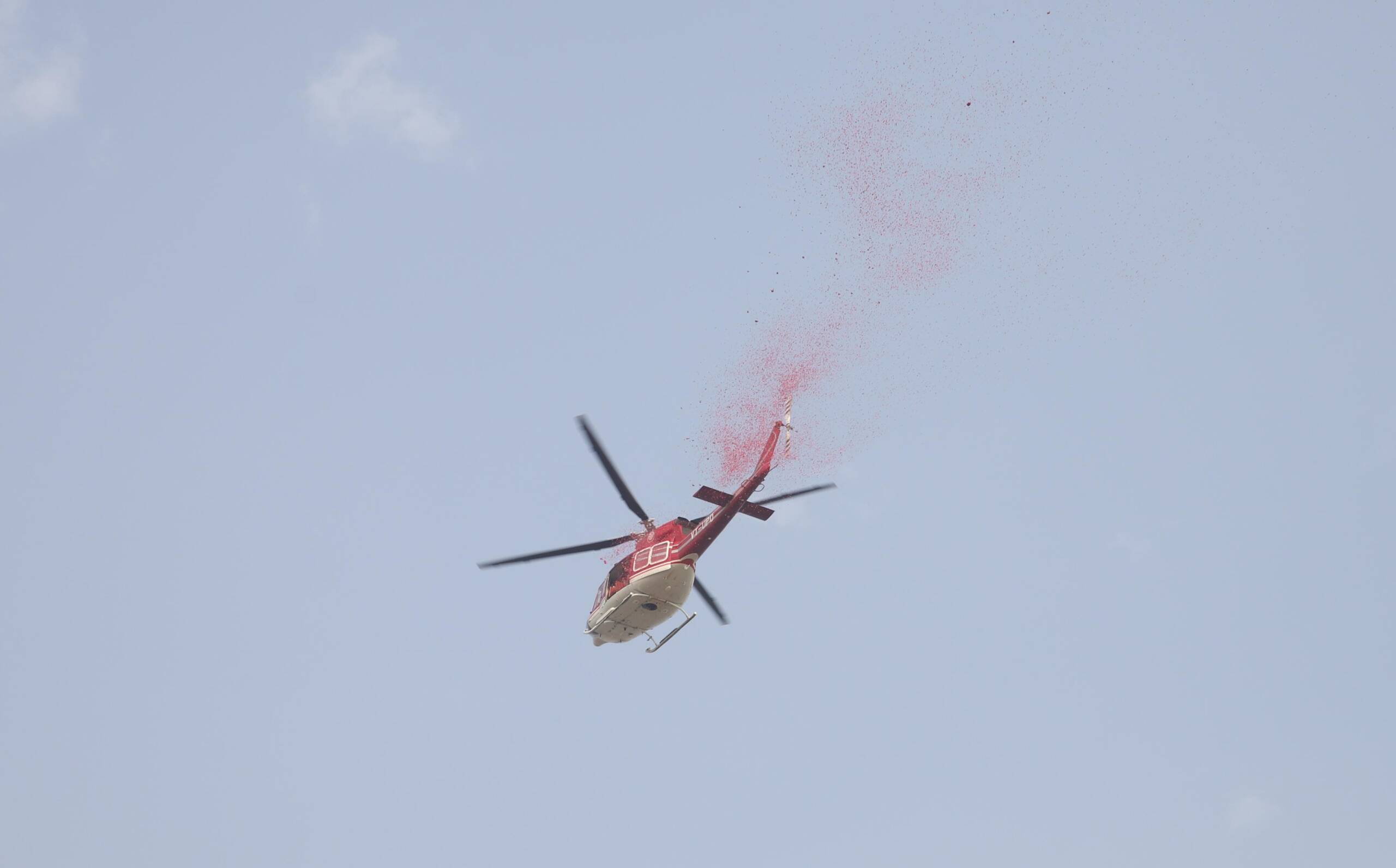 The aerial floral offering covered all ghats and akhadas, creating a mesmerizing spectacle. As rose petals rained down, the devotees chanted “Jai Shri Ram” and “Har Har Mahadev.” The Horticulture Department arranged 25 quintals of rose petals for the event.