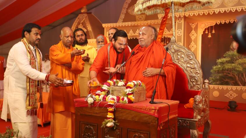 During the event, Jagadguru Ramanandacharya Swami Ram Bhadracharya assured the Chief Minister that the Mahakumbh would be etched in history as a landmark religious event.