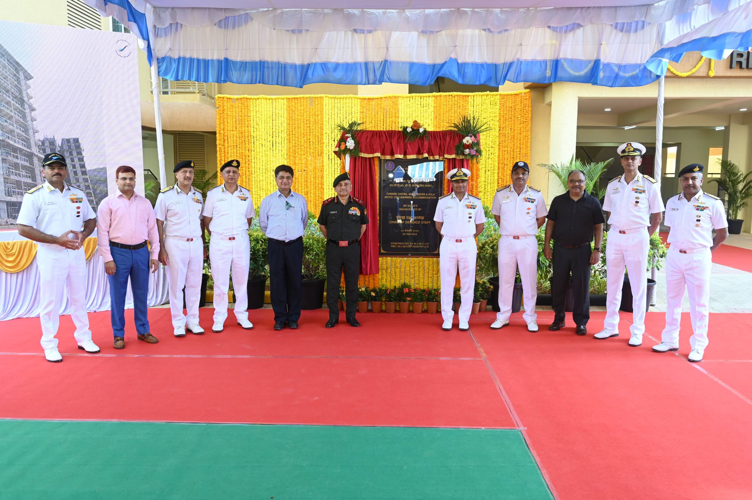 General Anil Chauhan, Chief of Defence Staff & Secretary, DMA inaugurated residential accommodation for Senior Sailors of Indian Navy and Main Distribution Sub Station as part of the Trunk facilities at Naval Base, Karwar on 04 Feb 25 with VAdm Krishna Swaminathan, Vice Chief of the Naval Staff, Shri SG Dastidar, DAS, FA (DS) and other senior officers in attendance.