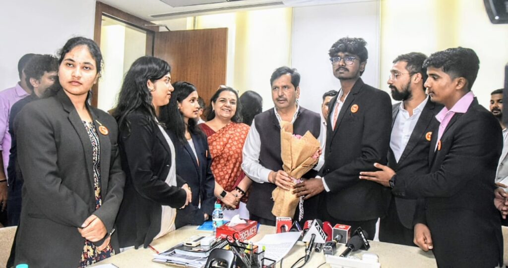Minister Lodha had invited college students to visit his ministerial office, with the objective of familiarizing them with the workings of the government and providing firsthand exposure to administration. During this visit, students were symbolically assigned the minister’s responsibilities for an hour.