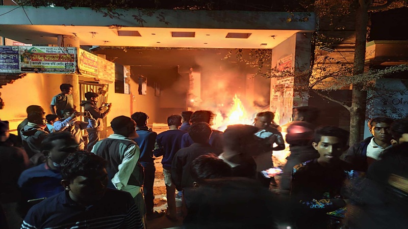 Jamalpur : The residence of Awami League organizing secretary and former state minister Mirza Azam was vandalized and set ablaze this evening amid growing political unrest.