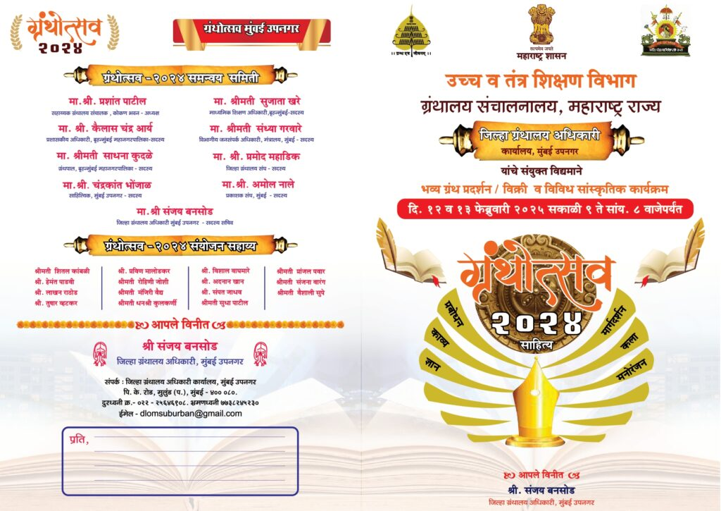 The Mumbai Suburban District Library Officer Sanjay Bansod and the festival coordination committee have invited book lovers and reading enthusiasts to attend the event.