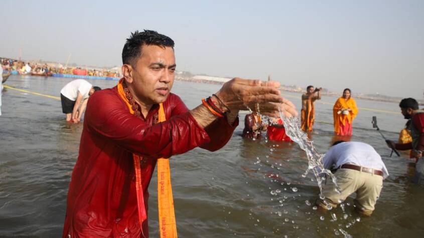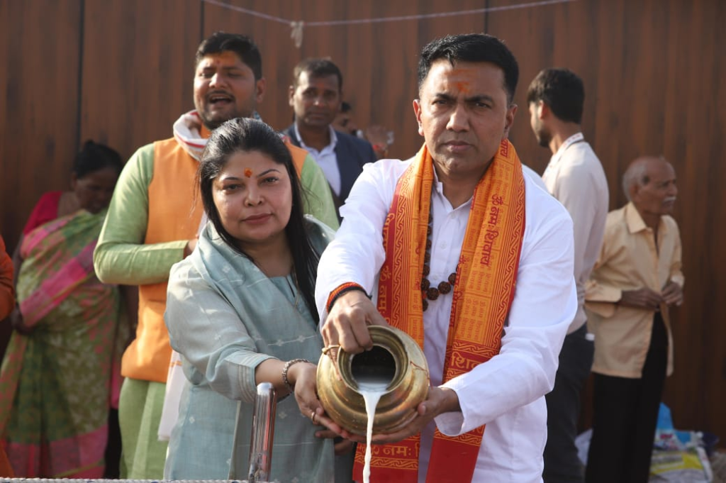 CM Sawant, along with his party’s State President and Cabinet members, arrived at Prayagraj Airport. From there, he proceeded to the Triveni Sangam, where he performed a ritualistic holy dip.