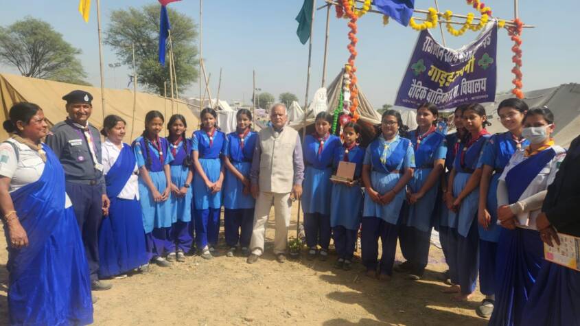 Jaipur – Scouts and Guides are showcasing their talents at the Rajasthan State Bharat Scouts and Guides District Jamboree in Govindpura, Ropada, under the theme “Empowered Youth – Developed India.” On Saturday, various activities such as adventure sports, quizzes, and city tours were conducted.