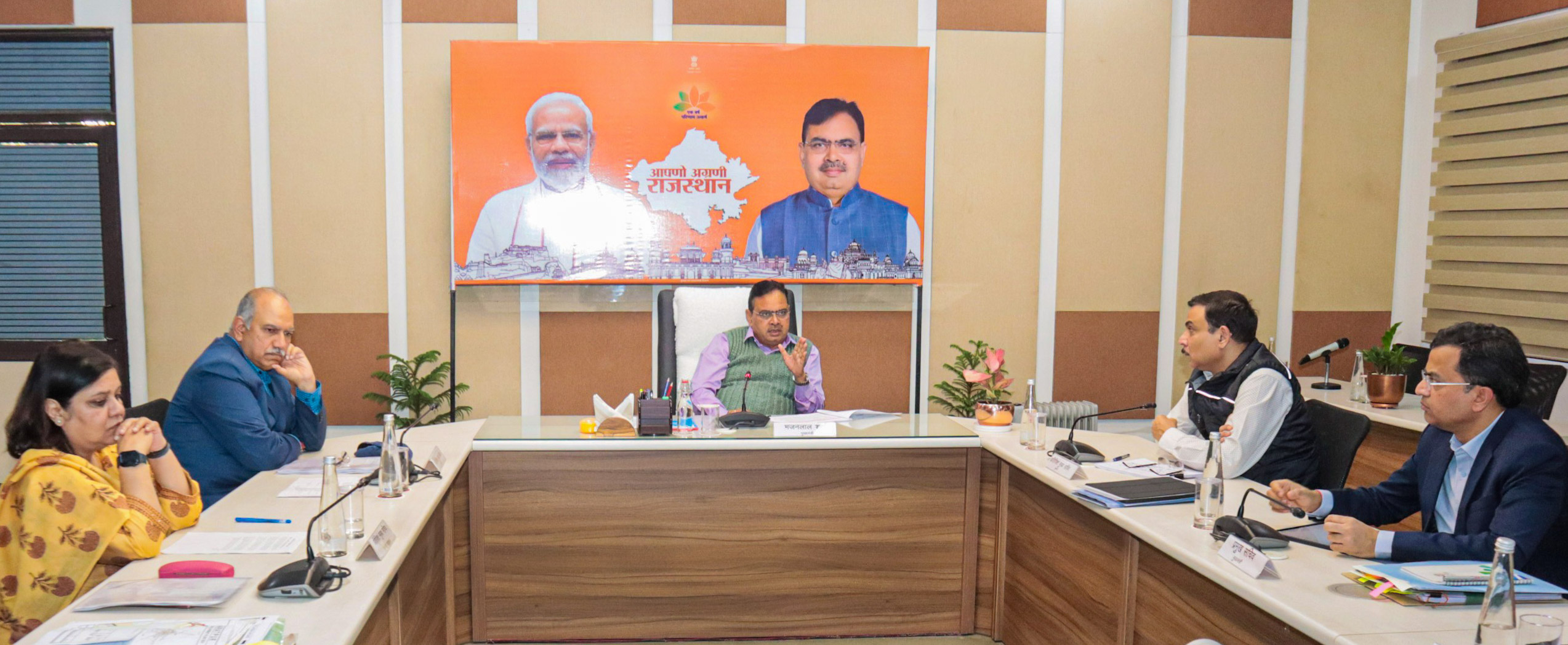 The meeting was attended by key officials, including Additional Chief Secretary for Water Resources Abhay Kumar, Additional Chief Secretary for Forest and Environment Aparna Arora, Additional Chief Secretary (CM Office) Shikhar Agarwal, Additional Chief Secretary for Public Works Praveen Gupta, Principal Secretary for Industries Ajitabh Sharma, Principal Secretary (CM Office) Alok Gupta, Principal Secretary for Revenue Dinesh Kumar, Principal Secretary for Urban Administration Rajesh Yadav, Principal Secretary for Health and Medical Services Gayatri Rathore, Principal Secretary for Urban Development Vaibhav Galaria, District Collector Bharatpur Dr. Amit Yadav, and District Collector Deeg Utsav Kaushal.