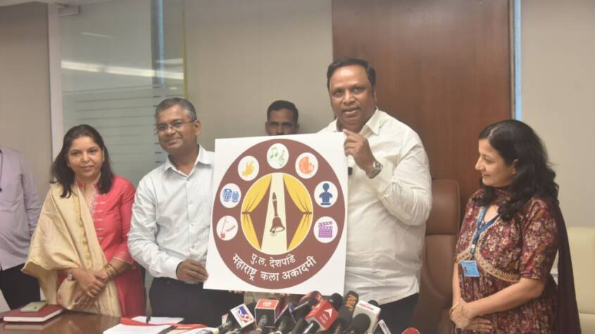 Prior to the press conference at Mantralaya, the new logo of P.L. Deshpande Maharashtra Kala Academy was unveiled by Minister Adv. Shelar in the presence of Vikas Kharge (Additional Chief Secretary to the CM and Cultural Affairs Department), Deputy Secretary Nanda Raut, and Academy Director Meenal Joglekar.