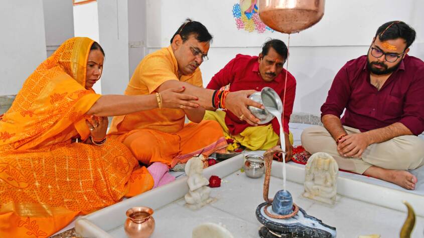 Shri Sharma performed the Jalabhishek (ritual bathing) of Lord Shiva, conducted prayers with Vedic chants, and performed the Aarti. Several officials and staff members present at the Chief Minister’s residence also participated in the ceremony.