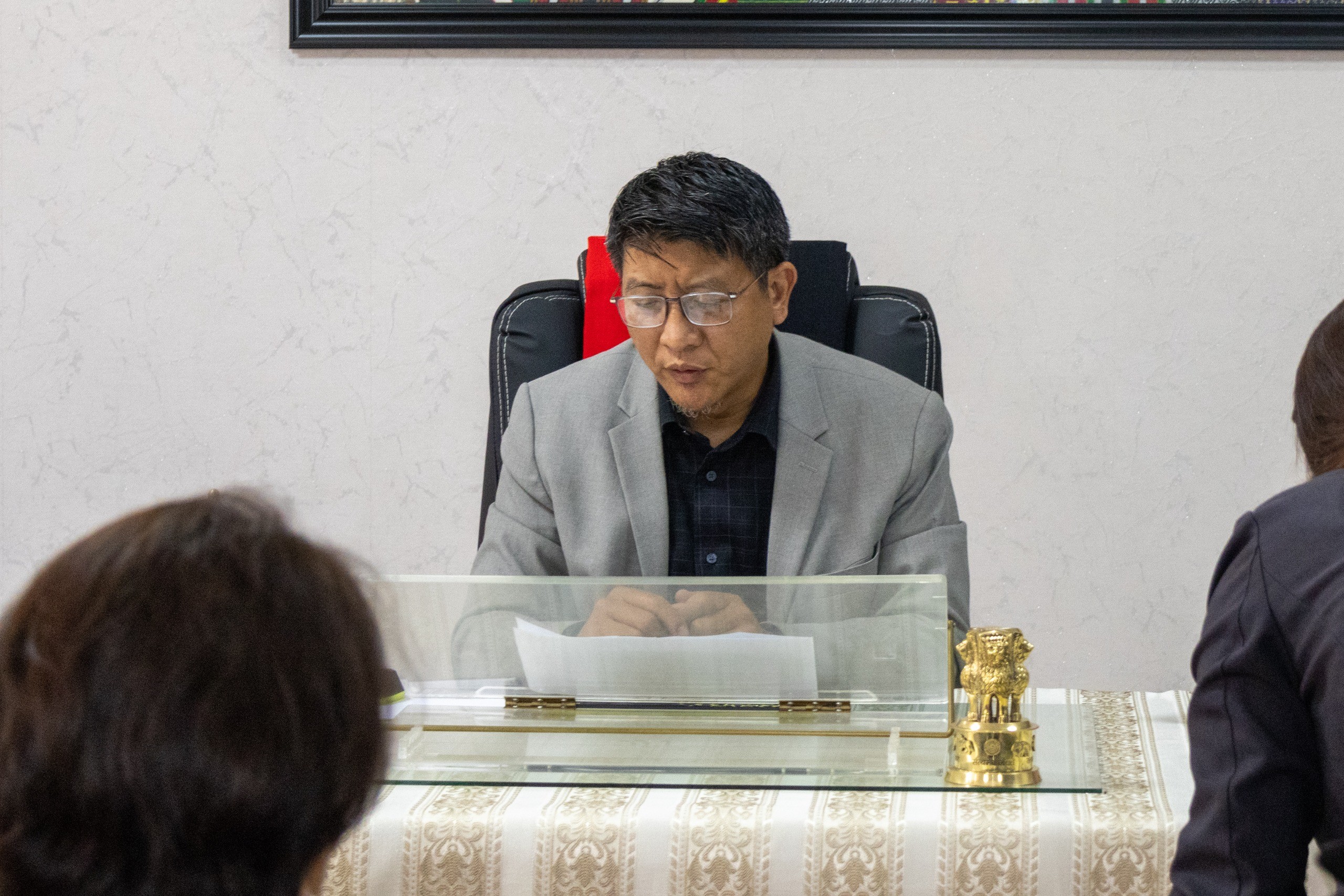 The meeting was chaired by Dr. Vanlalthlana, Minister for Higher & Technical Education, and attended by Minister & MLA Pi Lalrinpuii (Lunglei East), MLA Pu V. Malsawmtluanga (Lunglei North), MLA Pu Lalramliana Papuia (Lunglei South), MLA Er. Ginzalala (Champhai North), and officials from the Higher & Technical Education Department.