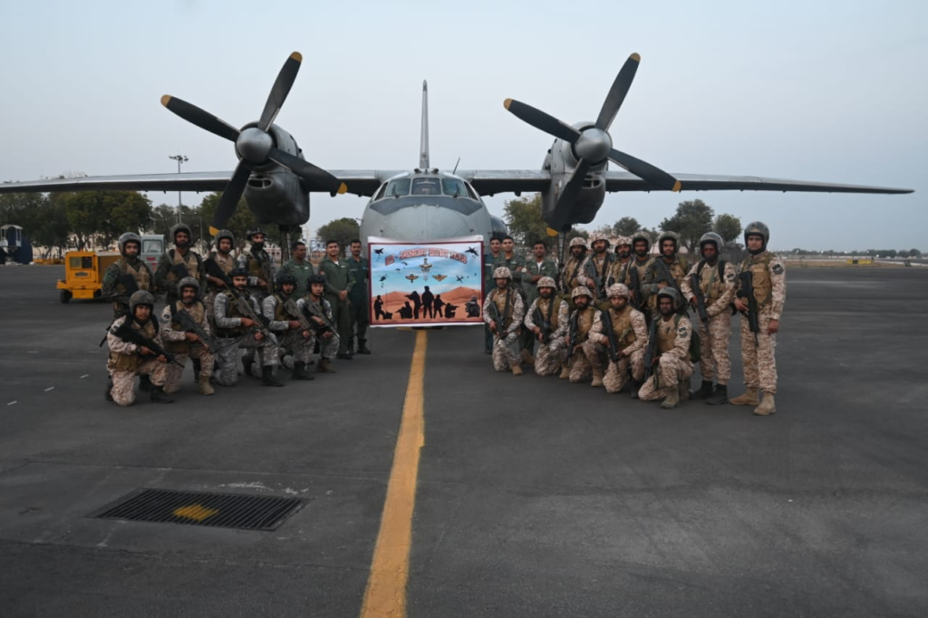 An integrated Tri-Service Special Forces exercise named Exercise Desert Hunt 2025 was conducted by the Indian Air Force at Air Force Station Jodhpur from 24 to 28 February 2025. The exercise involved elite Para (Special Forces) from the Indian Army, the Marine Commandos from the Indian Navy along with the Garud (Special Forces) from the Indian Air Force, participating together in a simulated combat environment.