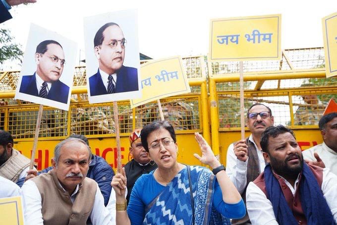 During the protest, Atishi affirmed that the BJP is having a problem with Babasaheb Dr. B.R. Ambedkar’s image and legacy. She pointed out that when AAP legislators chanted “Jai Bhim” in the Assembly, 21 of them were expelled. However, when BJP legislators chanted “Modi-Modi,” no action was taken.