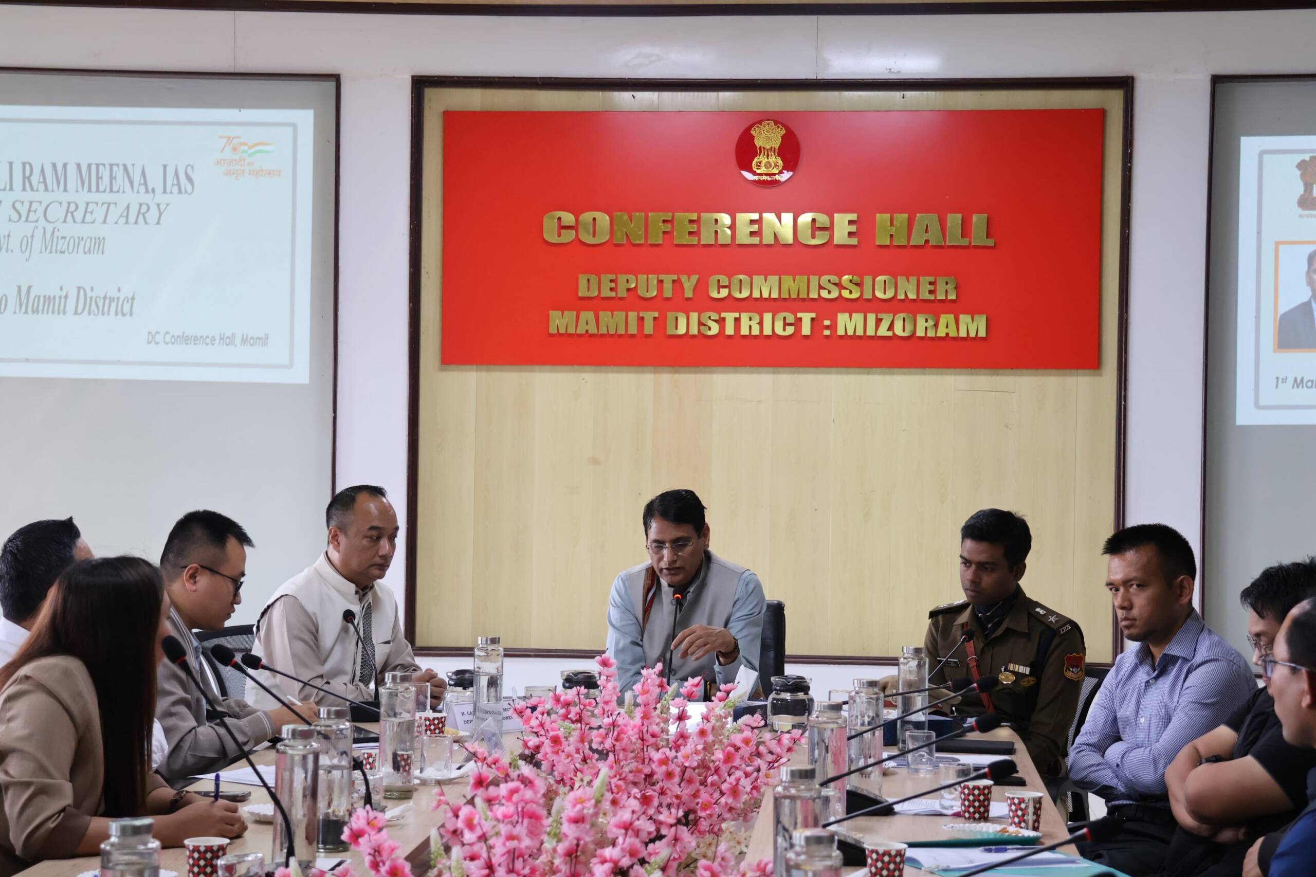 Mamit – Shri Khilli Ram Meena, IAS, Chief Secretary of Mizoram, visited Mamit today, where he attended a meeting with officials from various departments at the DC Conference Hall, Mamit. The meeting was chaired by Pu K. Laltlawmlova, District Commissioner.