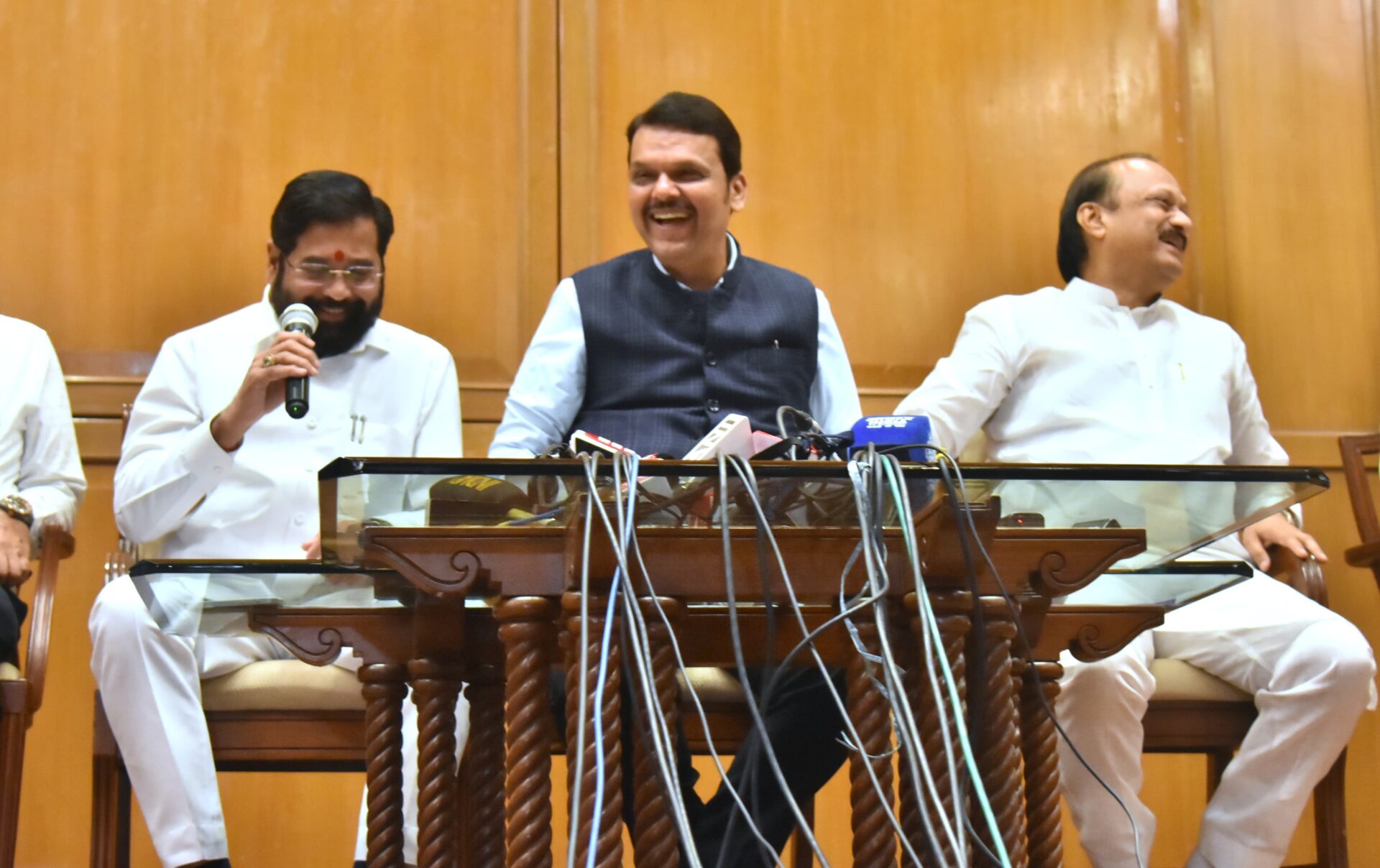 The press meet was held after the tea reception organized on the eve of the legislative budget session. CM Devendra Fadnavis, Deputy CM Eknath Shinde, and Deputy CM Ajit Pawar addressed the media. Several ministers, including Parliamentary Affairs Minister Chandrakant Patil, Water Resources Minister Girish Mahajan, Tourism Minister Shambhuraj Desai, Fisheries Minister Nitesh Rane, OBC Welfare Minister Atul Save, Marketing and Protocol Minister Jaykumar Rawal, Transport Minister Pratap Sarnaik, and Tribal Development Minister Ashok Uike, were present at the event.