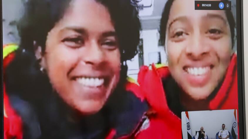 Raksha Mantri Shri Rajnath Singh interacted with the crew members of Navika Sagar Parikrama II (NSP II), Lt Cdr Dilna K and Lt Cdr Roopa A of the Indian Navy, through video conferencing today on 7 March, 2025 on the eve of International Women’s Day in New Delhi. Their sailing vessel INSV Tarini, currently in the South Atlantic Ocean at a distance of 450 nautical miles from the previous port of call Port Stanley in the Falkland Islands, is heading to Cape Town, South Africa.